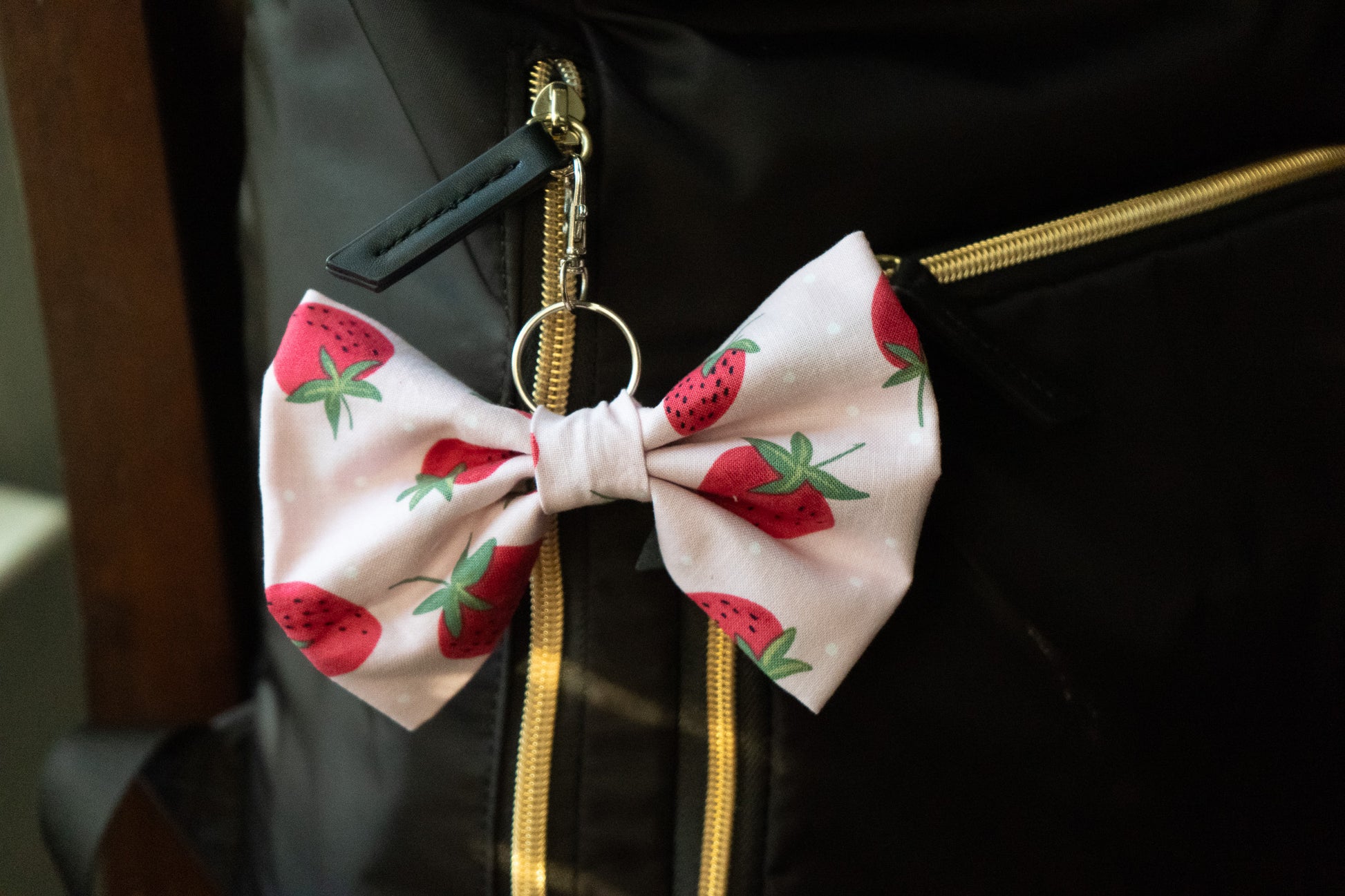 Keychain accessory in a bow shape that can be attached to your bag or backpack!