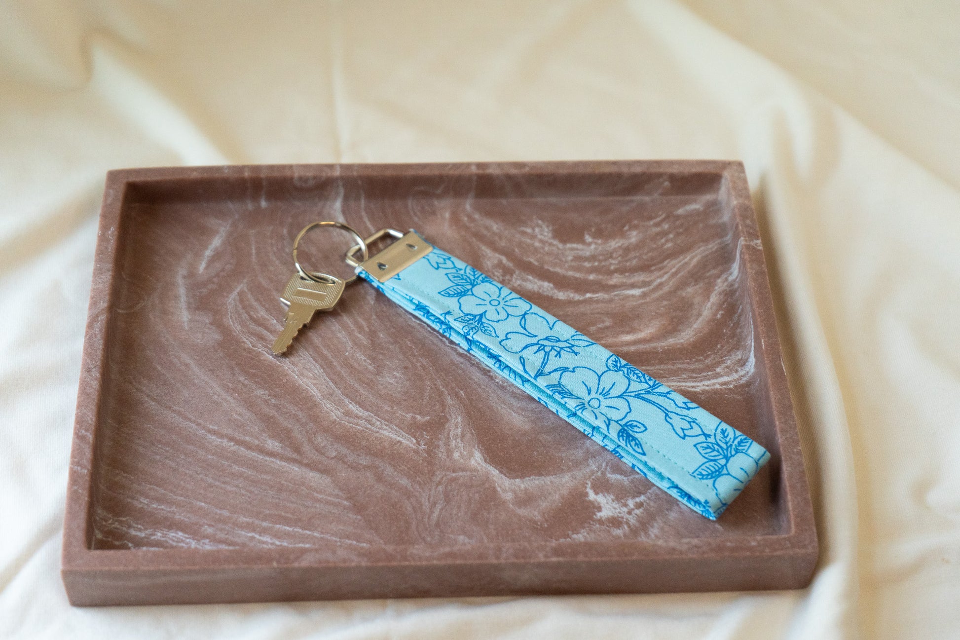 Keep your keys close and your hands free with this stylish wristlet keychain!